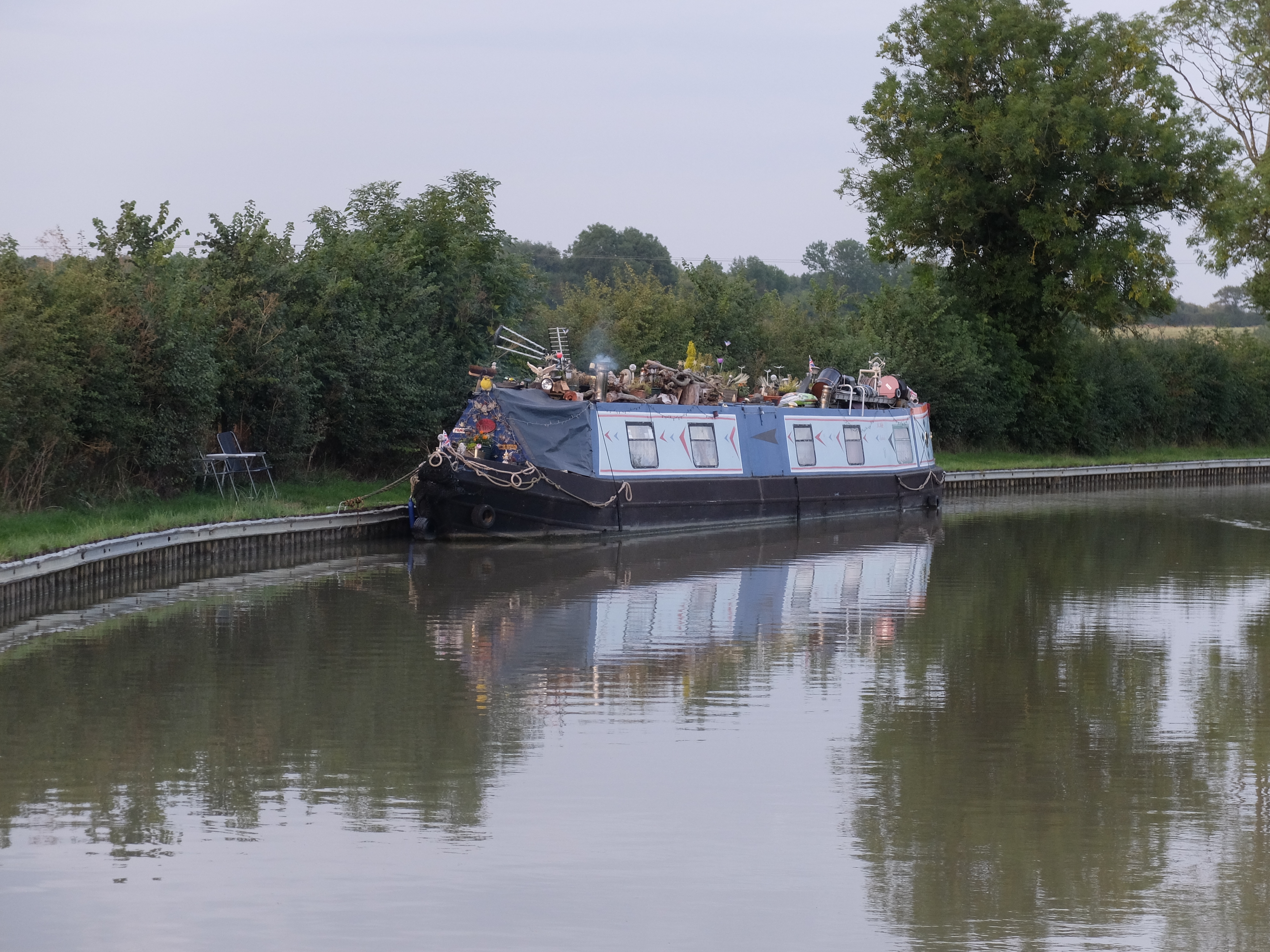 We passed a boat that seems to have found a way around the need to have a licence, it has moored on the field rather than in the canal.