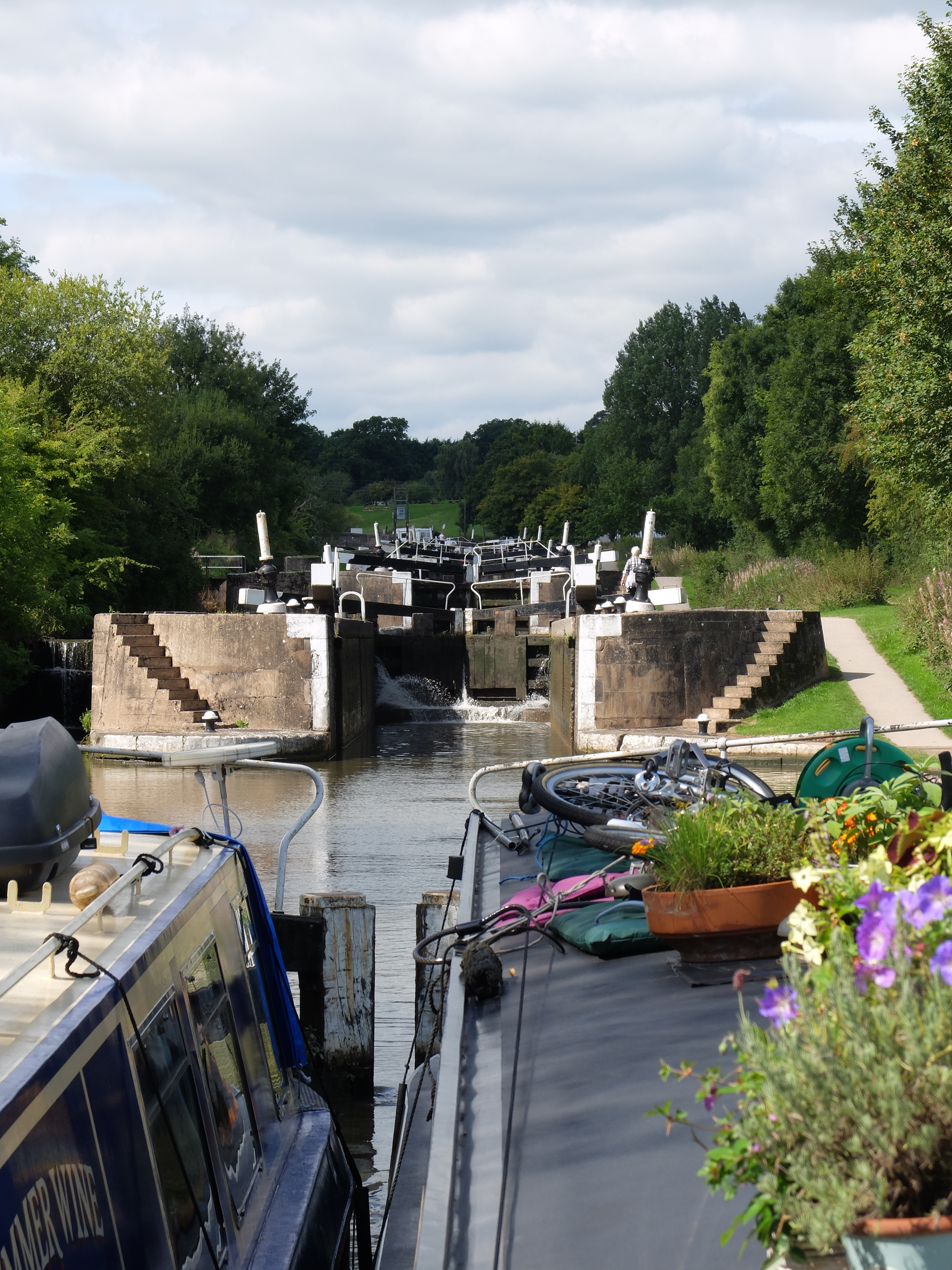 The lock keeper turned up near the bottom of the flight in time to watch me make a complete hash of going into the next lock. Every previous entry that day had been perfect!