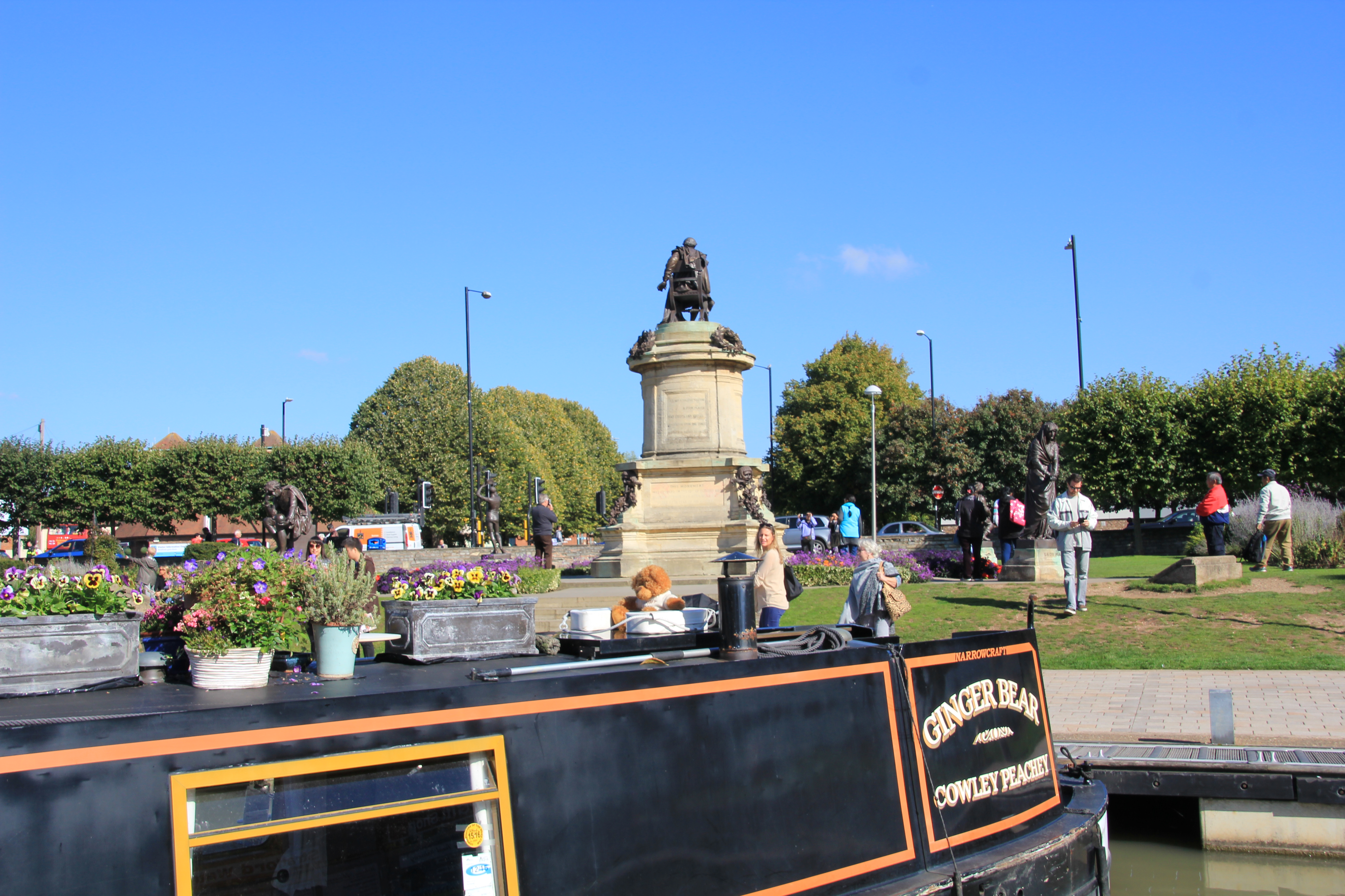 Another beautiful sunny day. We moored in the centre of Banbury, and Dugald collected Bids and Nick from the station, while I got lost in an enormous Morrisons. They had to send a search party out for me.